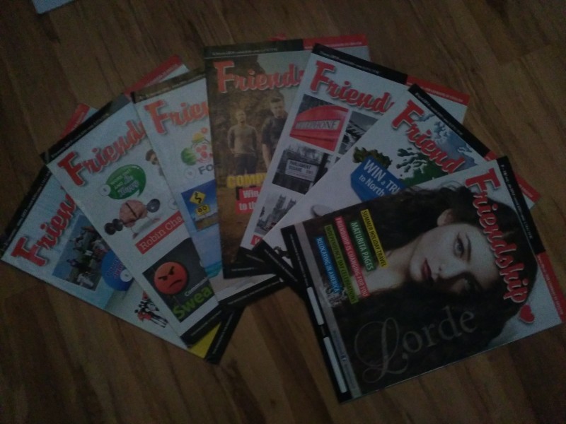 Ponukam casopisy Friendship,6 kusov z toho 2 su dvojcisla,neposkodene v super stave,nepokrcene, nepotrhane ani nepopisane Su to cisla z roku 2014, konkretne od septembra po april. Cena za kus 0,40€ v pripade odberu vsetkych kusov cena 3€