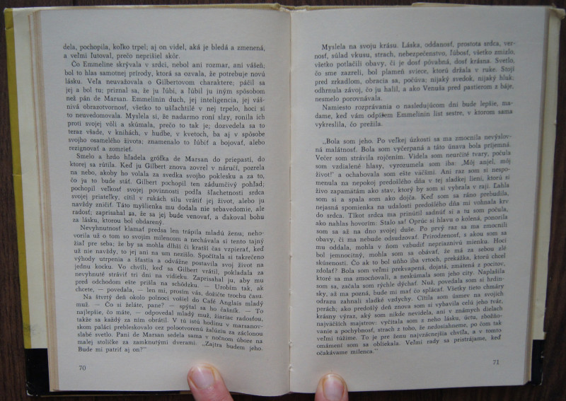 Výber z noviel francúzskeho predstaviteľa romantizmu. Alfred de Musset veril predovšetkým v čistý, nefalšovaný cit, ktorý sa prejavoval v láske. Druhou hodnotou, v ktorú veril, bolo umenie. Tieto dve hodnoty majú v jeho tvorbe popredné miesto. V jeho novelách má láska mnoho podôb, rojčenie mladosti, keď prvé sklamanie vháňa človeka do zúfalstva (novela Margot), prebudenie mladej ženy, ktorá skutočnú lásku objavuje až po vydaji (Emmeline), ale aj tragická láska, vyplyvajúca zo sociálno - spoločenských protirečení. Tieto problémy lásky, umenia, i vlastného postavenia v spoločnosti vykresľuje s humorom a iróniou.
