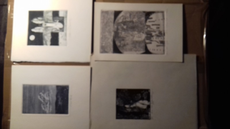 4 volné grafické listy - Techniky drevoryt,lept,suchá ihla.. 1.Maja DUSÍKOVÁ lept Rozmer tlače 10x6 cm Rozmer listu 16x14 cm- bez názvu a čísla len podpis v strede. Cena 50 euro.... 2.Stano DUSÍK Ex libris Peter Glocko lept RT 9x8cm RL 16x14cm bez čísla podpis v strede Cena 70 euro.... 3.Dušan KÁLLAY NociXXII 1975 drevoryt číslo 13/50 Rozmer tlače 7x6.5 cm rozmer listu 22x21 podpis vpravo Cena 90 euro... 4.Karol ONDREIČKA Sme ako anjeli 1977 číslo 15/50 RT 14x9cm RL 18x12cm podpis vpravo dole Cena 80 euro