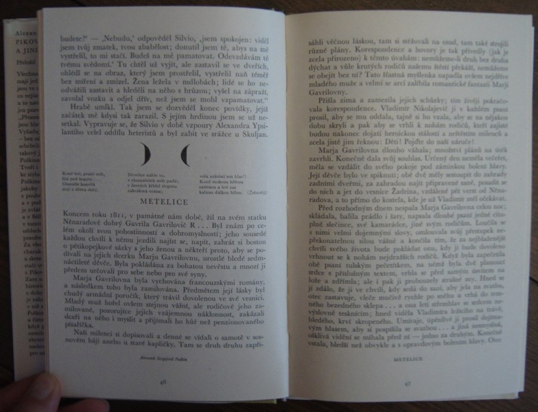 Obsahuje povídky: 1. Povídky nebožtíka Ivana Petroviče Bělkina Výstřel Metelice Majitel pohřebního ústavu Staniční dozorce Slečna selka 2. Dubrovskij 3. Piková dáma 4. Kyrdžali 5. Kapitánská dcerka