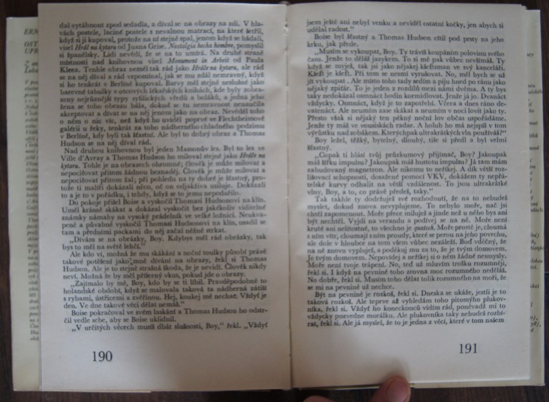 Románový triptych, jehož pojítkem je postava úspěšného malíře Thomase Hudsona. Stejně jako se děj knihy odehrává na jednotlivých ostrovech v Atlantickém oceánu a na Antilách v oblasti Golfského proudu, představují tři části románu jakési ostrovy uprostřed života hlavního.